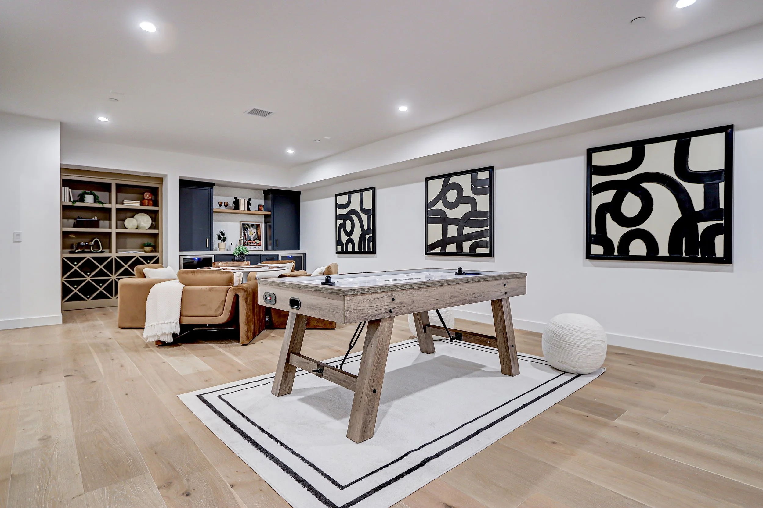 Media & Recreation Area: Whether it's a casual movie night or a high-energy game night, this cavernous lounge sets the perfect tone. The thoughtfully designed layout ensures a cozy yet spacious feel, ideal for hosting guests or unwinding after a long day.